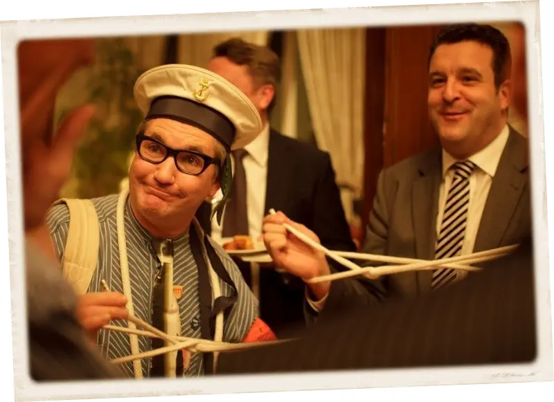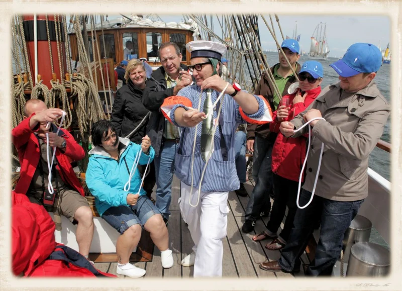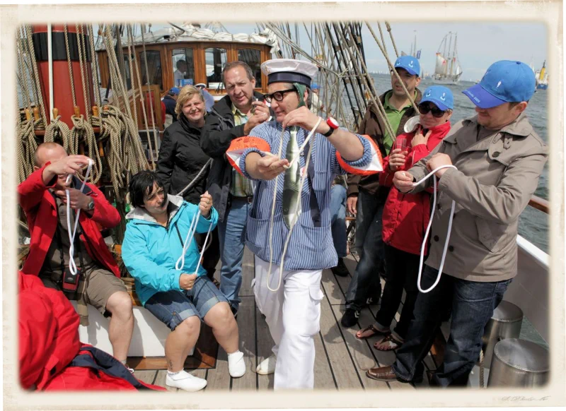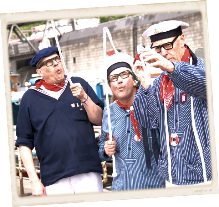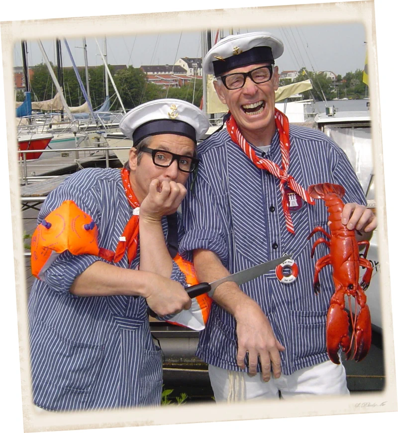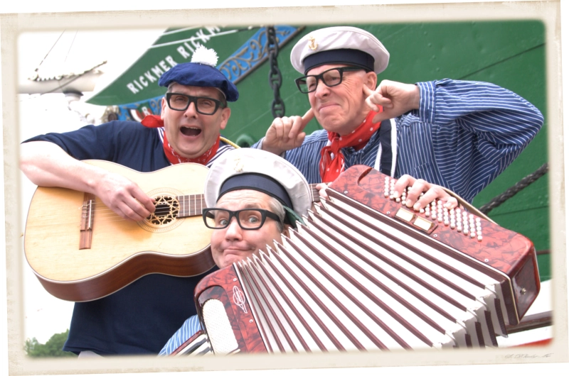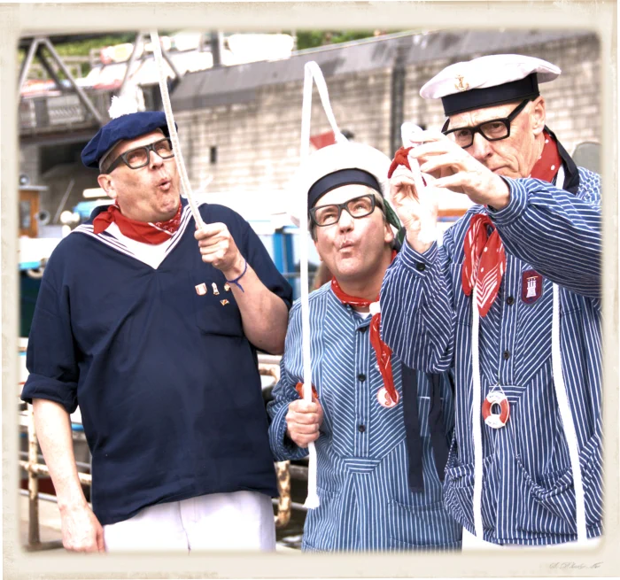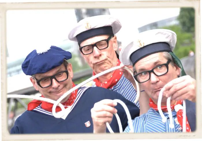 Wenn die schwermütigen Leichtmatrosen das Deck unsicher machen, knarren die Planken und die Ratten verlassen das sinkende Schiff...!Aber selbstverständlich gehen die nicht ganz seefesten Matrosen auch auf Landgang, um auf ihrer Veranstaltung maritimes Flair zu verbreiten. Dabei lassen sie sich das Ruder nicht aus der Hand nehmen...!Und immer dabei: Die Knotenschule!Wenn sich die Passagiere unter Anleitung in der Kunst des Knotenschlagens versuchen, scheinen diese Seemannsknoten einen "eigenen Willen" zu haben. Dahinter stecken jedoch Zauberei und eine Menge Spaß... …und zuguterletzt ist das Erfolgerlebnis dann doch garantiert.Der maritime Walking Act mit und von den Comedymatrosen ist ein unterhaltsamer Mix aus Comedy, Zauberei, Theater, Musik, Animation und reichlich Seemannsgarn. Die Comedy-Zauber-Animation ist absolut mobil und eignet sich für sitzende oder stehende Gästegruppen; zu Wasser und zu Land!Diverse Themen rund um die Seefahrt werden humorvoll ad absurdum geführt.Da lacht sogar der Klabautermann…Diverse Themen rund um die Seefahrt werden humorvoll ad absurdum geführt.Da lacht sogar der Klabautermann...Mehr Information und weitere maritime Unterhaltungsangebote (Shanty-Show, Comedy-Marktschreier u.a.) der Matrosen finden Sie auf der eigenen Webseite der Seebären:www.die-matrosen.de